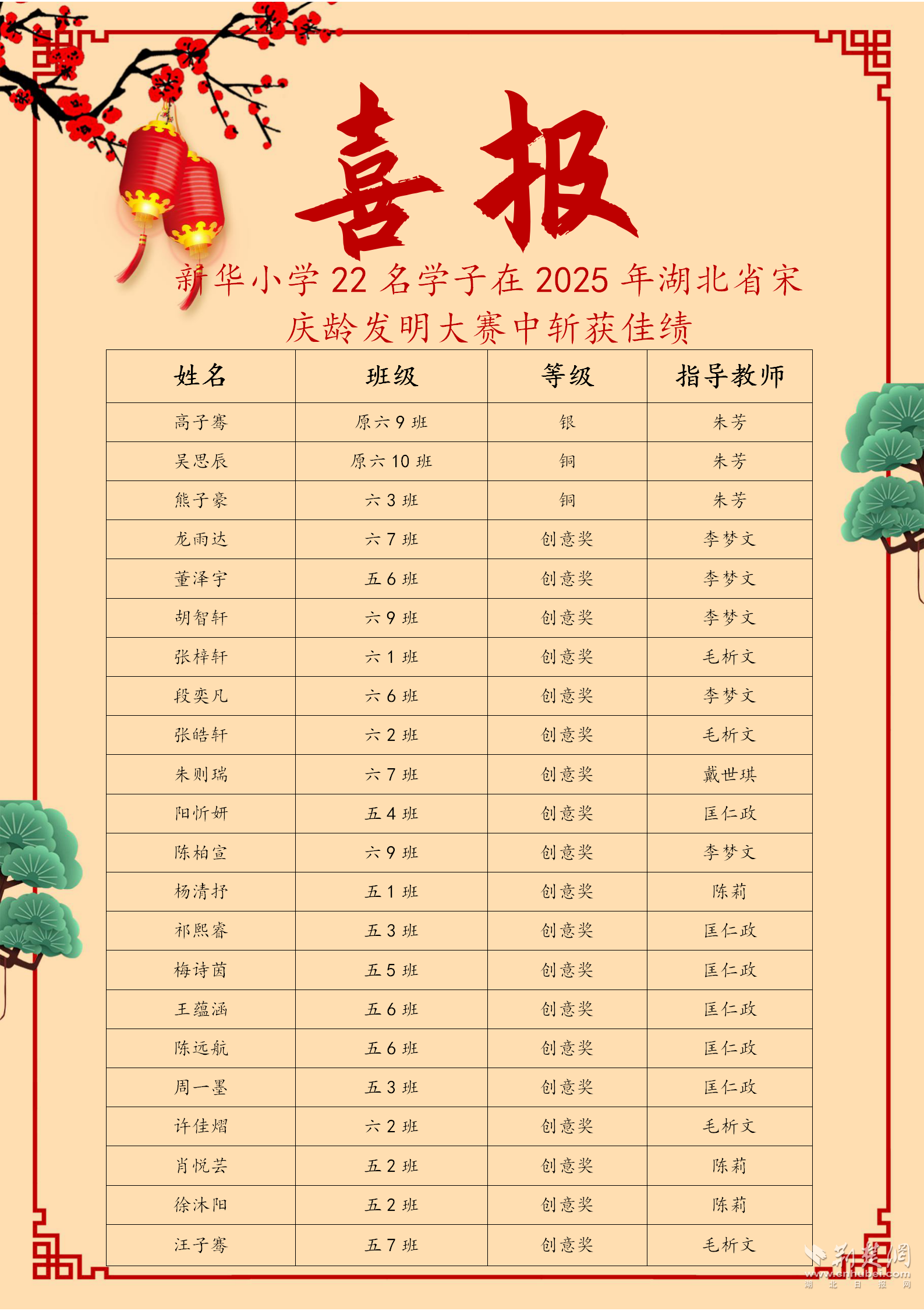 在第19个Soong Ching ling Ling儿童发明奖湖北部选拔赛中,学生获得了1个银奖,2铜牌A根据仔细的教师指南,病房和19个创意奖。 5月,科学技术集团成立了13名学校的学生,参加了武汉青年的武汉青年广播实践活动,并获得了3次第二次奖品,5个第三次奖品和第三次奖品。孩子们用爱作为机器来编写电路板之间的创新章节。