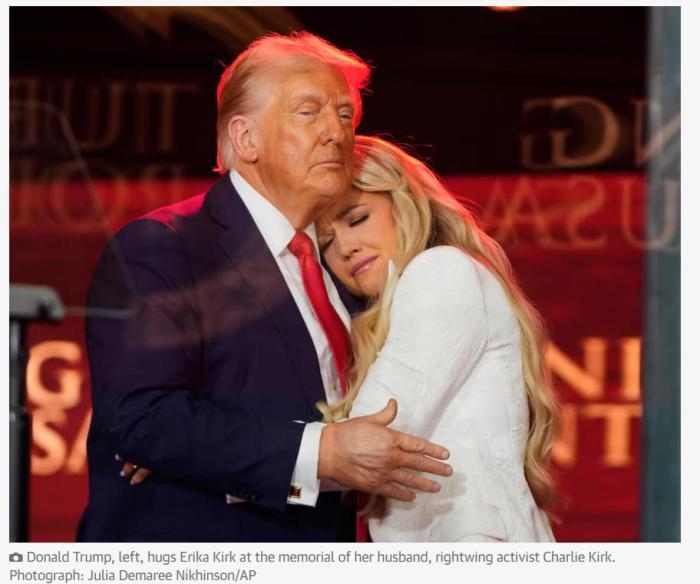 特朗普参加查理·柯克(Charlie Kirk)追悼会:美国“震惊与悲伤”